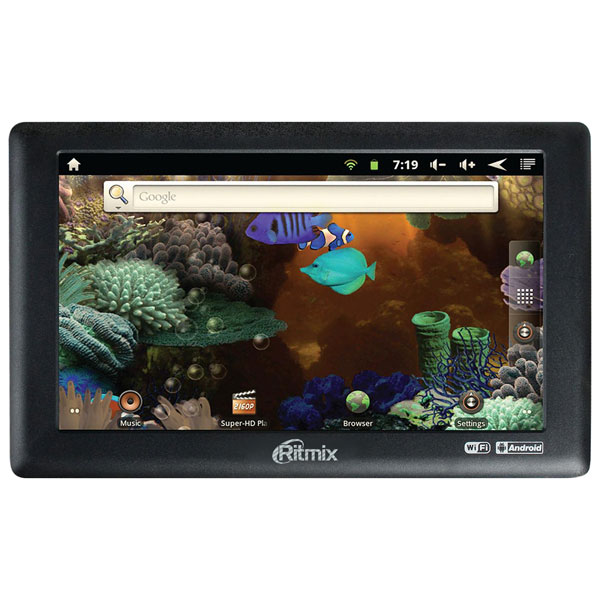 Ritmix RMD-720 – новый планшетный компьютер с ОС ANDROID 2.3 и ярким 7-ми дюймовым мультитач дисплеем. Благодаря мощному встроенному процессору Boxchip планшетный компьютер может проигрывать множество видео-форматов вплоть до FullHD. Новинка оснащена аналоговым выходом на ТВ, с помощью которого вы сможете выводить изобраение с карманного компьютера на большой экран.