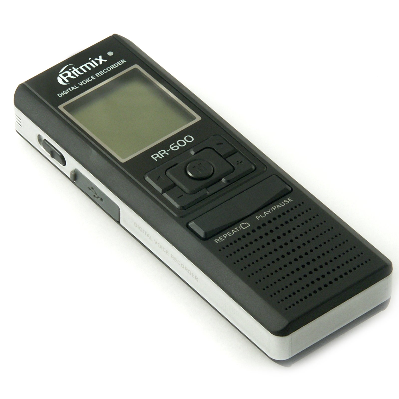 - Цифровой диктофон Ritmix RR-600 2Gb - позволяет вести запись с прямым кодированием в формате MP3 в моно или стерео режиме. Работает от батареек типа ААА и стационарно от USB. Диктофон позволяет вести запись как со встроенного, так и с внешнего микрофона, идущего в комплекте, а также с телефонных аппаратов и мобильных телефонов. Устройство оснащёно встроенным динамиком и слотом для карт памяти Micro SD.